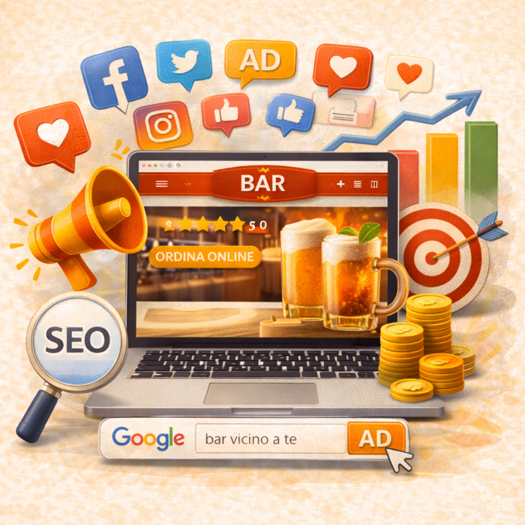 Nei bar la domanda esiste, ma è legata a prossimità, abitudine e momento. Se Google non è ottimizzato e i social non spingono format e CTA, perdi colazioni, pranzi e aperitivi.